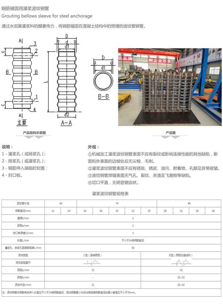 鋼筋錨固用灌漿波紋管鋼管